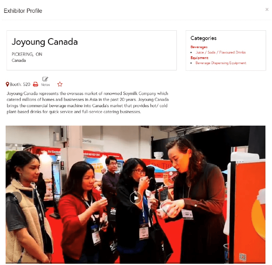 展位位于人潮密集的中餐协会(CCHAC)国际食品展区,九阳加拿大通过现场展示机器规格、出浆、制浆流程,为本地采购商提供了一站式体验豆浆文化的机会。此外,RC SHOW官网的展商明细也提供了更直接的搜索品牌信息与销售联系方式,实现了线上查询与线下体验的无缝链接。