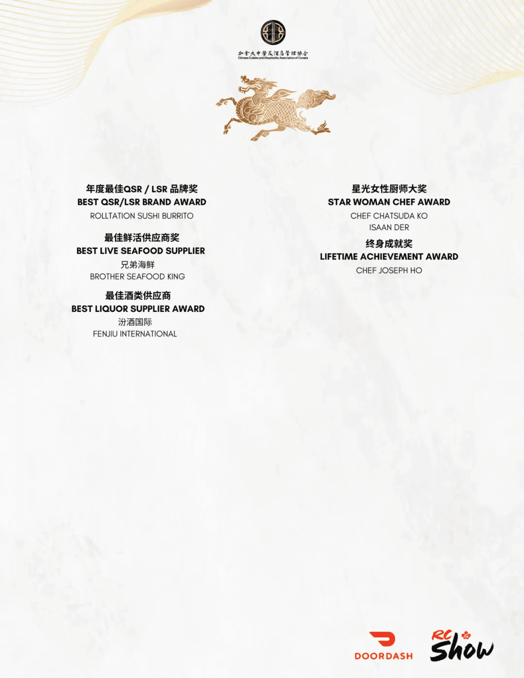 为进一步提升华人主导的亚洲餐饮业在北美市场的认可度,加拿大中餐及酒店管理协会自 2023 年起,与 RC SHOW 深度合作,将华人餐饮行业的杰出代表推向国际舞台。